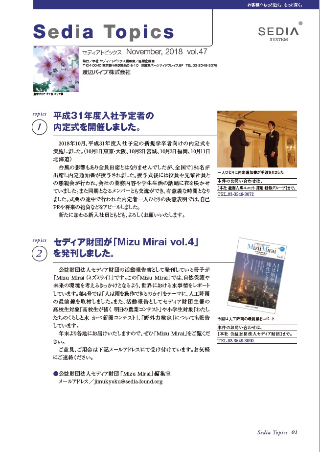 ② セディア財団が「Mizu Mirai vol.4」を発刊しました。